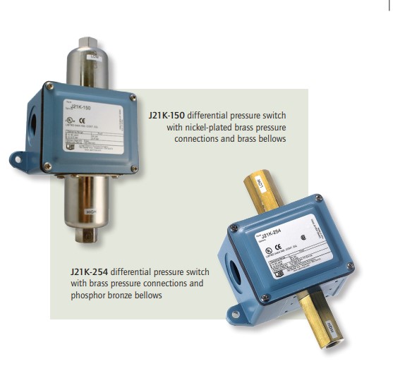 The J21K Series is simple to install and operate for alarm, safety and emergency shutdown applications requiring a higher switch sensitivity. It monitors the difference between two system pressures or vacuum using sealed, opposing bellows sensors.